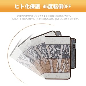 製品さいこう表面温度は40-60度ほどです。いつも身体に優しい温度を維持しているため、触れただけで火傷するような高温になりません。さらにお子様やペットにぶつかられて倒れて本体が重ねることによる過熱があっても、弊社のデスクヒーターは過熱防止機能付きで、お気軽にお使いいただけます。