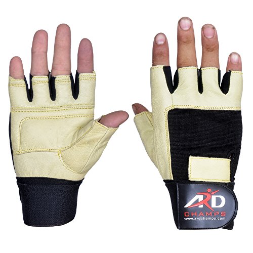 -. Title : ARD Heavy Duty Leather long wrist wrap Weight Lifting Gloves Exercise Training Gym Yellow shade