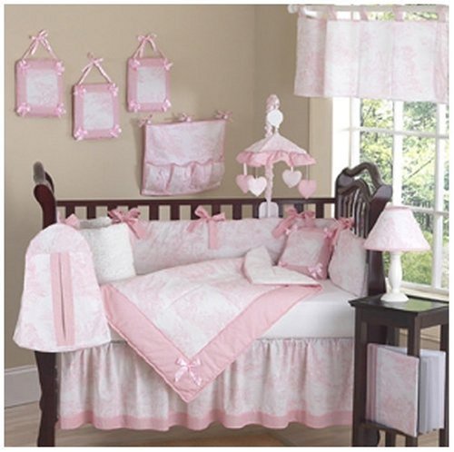 Vintage French pink toile lamp shade matches the JoJo designs baby bedding set