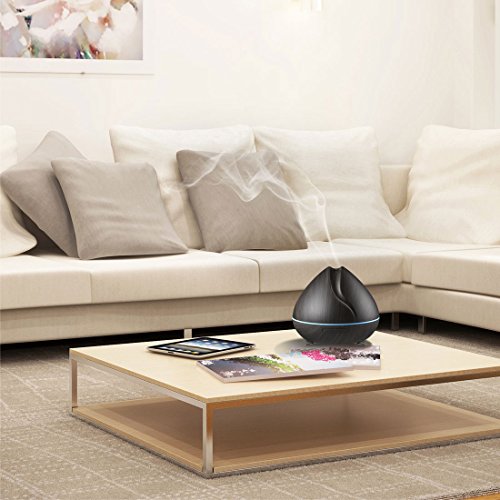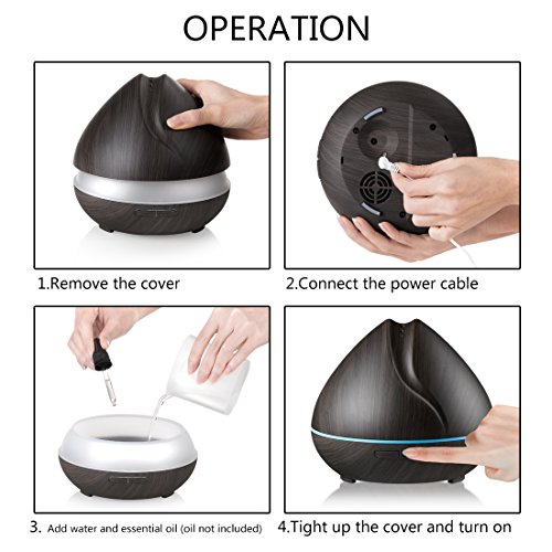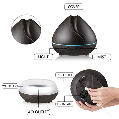 UNIQUE HEART-SHAPED DESIGN: Heart-shaped cover with classic black wood grain finish, columns of mist curl up from top of the oil diffuser, looks very beautiful and romantic.