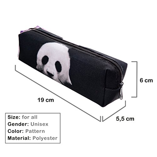 Pencil Case For Girl, GreenDimension Stationery Coin Purse Pouch Cosmetic Bag Makeup Brush Holder Black Cute Panda Animal Pattern Big Capacity Multifunction Students Storage Organizer With Zipper