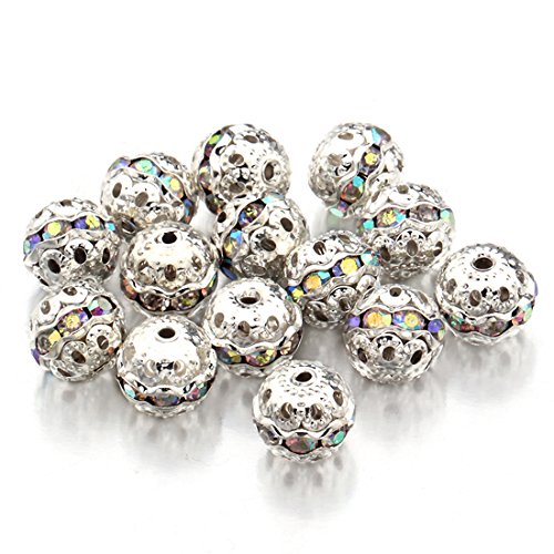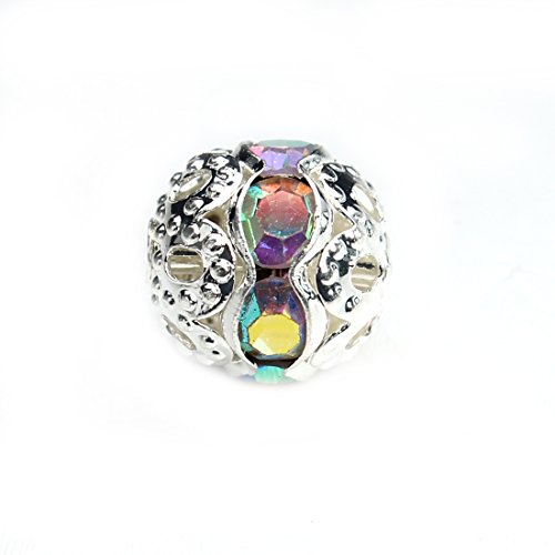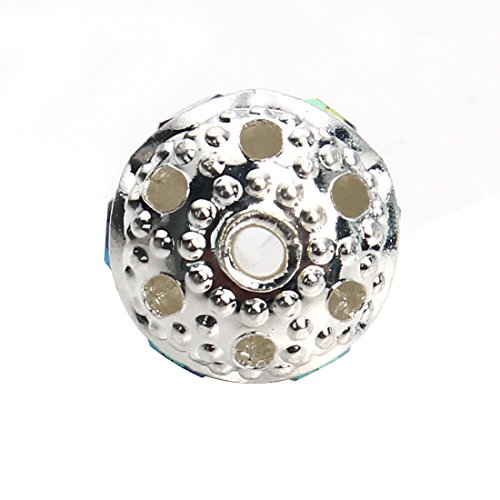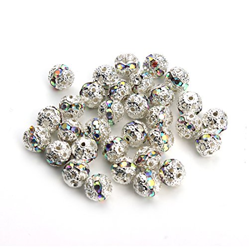 Linsoir Beads Round Crystal AB Stones Spacer Beads Silver Plated Hollow Metal Bracelet Beads 6mm Pack of 30 Pieces