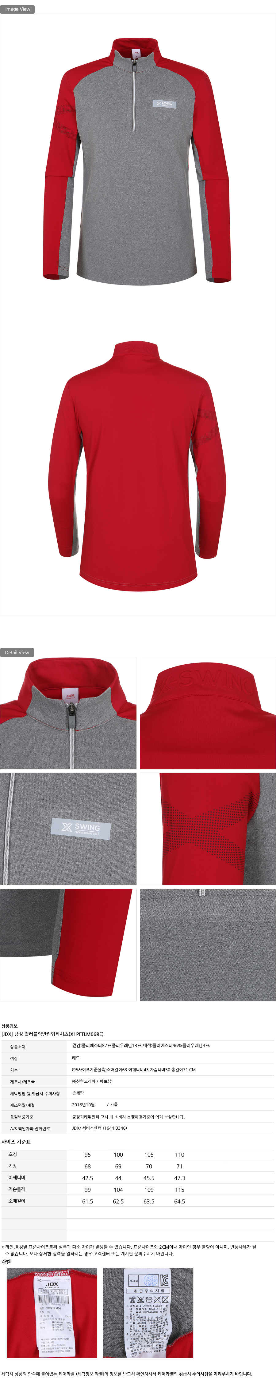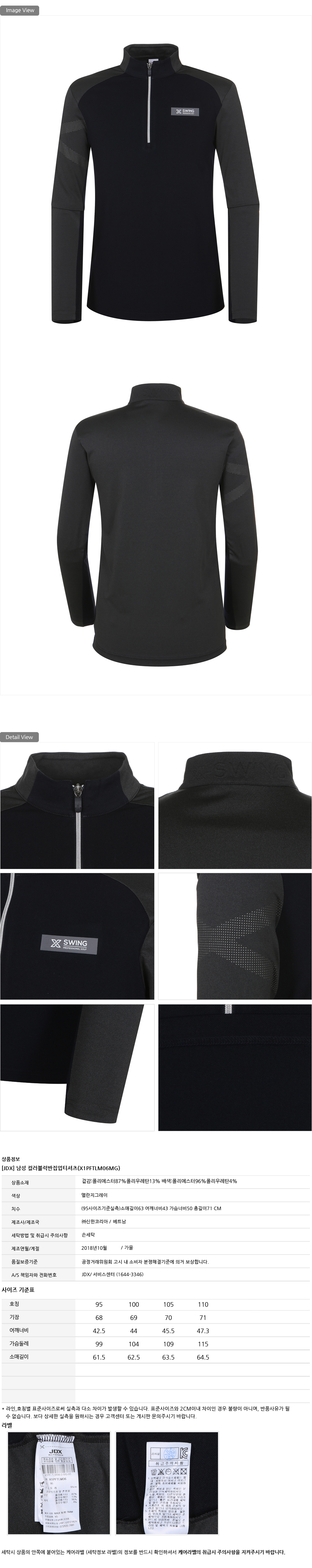 산뜻한 컬러블럭배색 디테일의 반집업티셔츠입니다.가볍고 신축성이 좋은 소재로 편안한 착용감을 선사합니다.