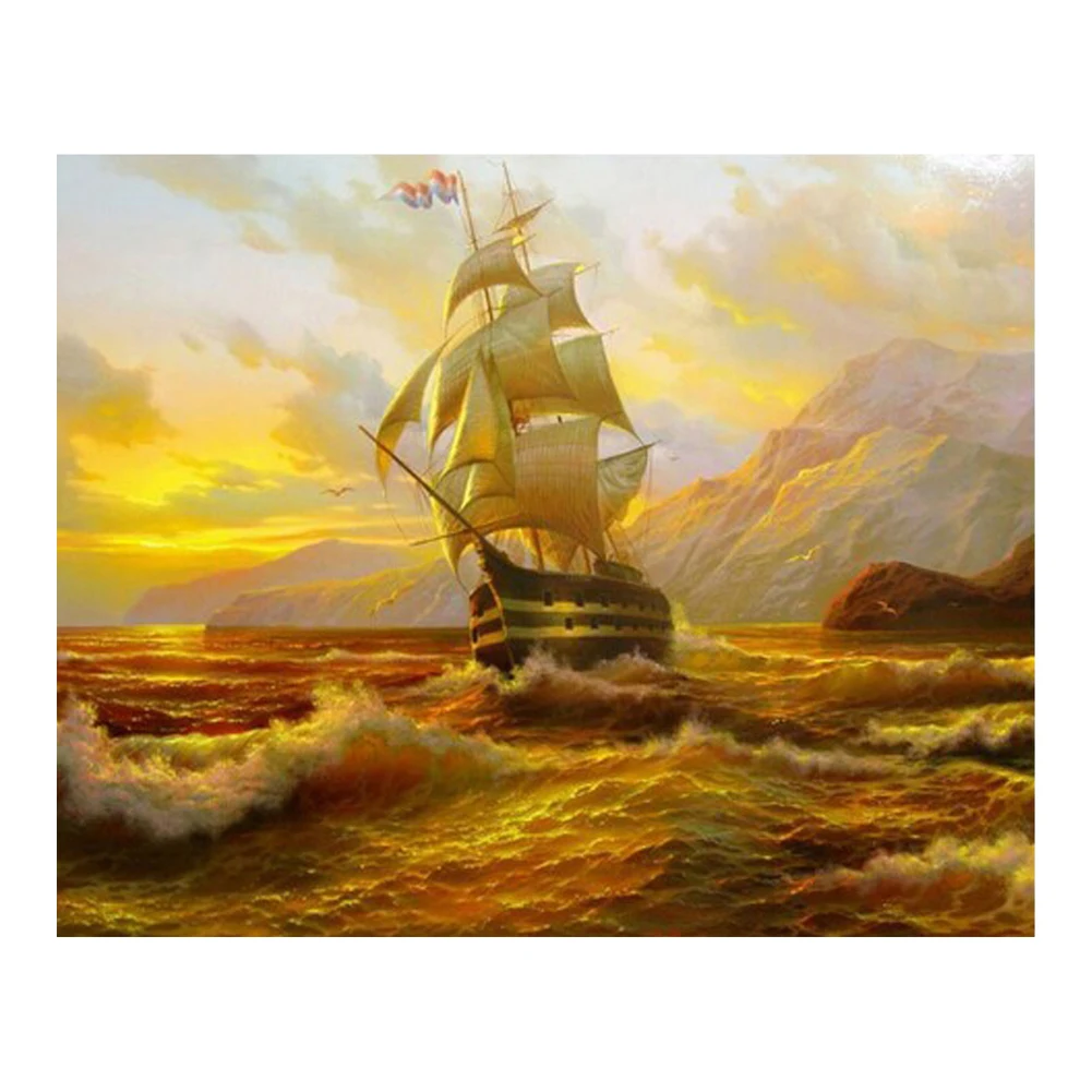 5D Diamond Embroidery Scenic Diamond Cross Stitch Crystal Square Diamond Sets Unfinish Decorative DIY Diamond Painting Sailboat