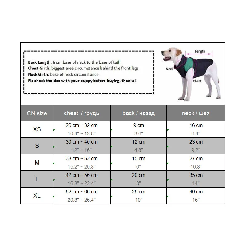 XS size:chest 26-32cm, neck 16cm, back 9cm
