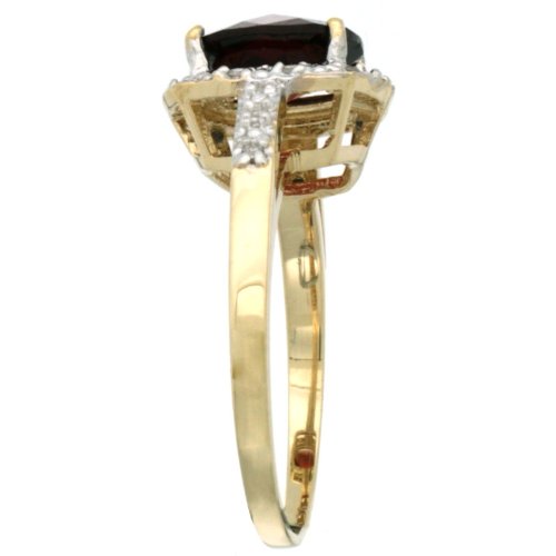 -. Title : 10K Yellow Gold Diamond Natural Garnet Ring Cushion-cut 8x8mm, sizes 5-10