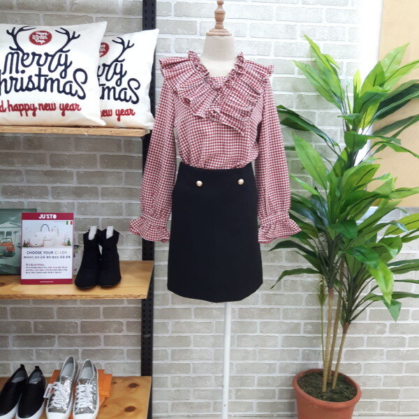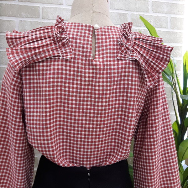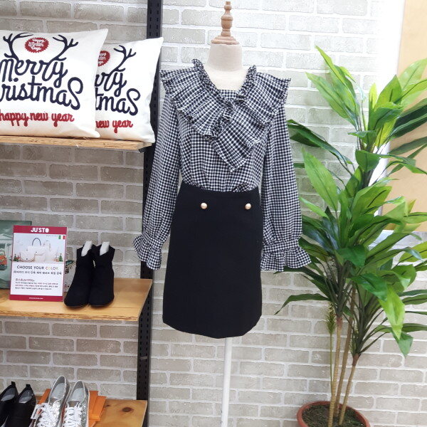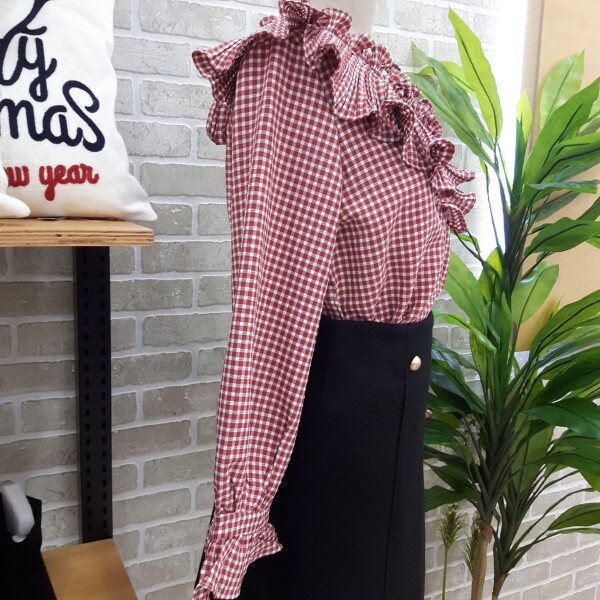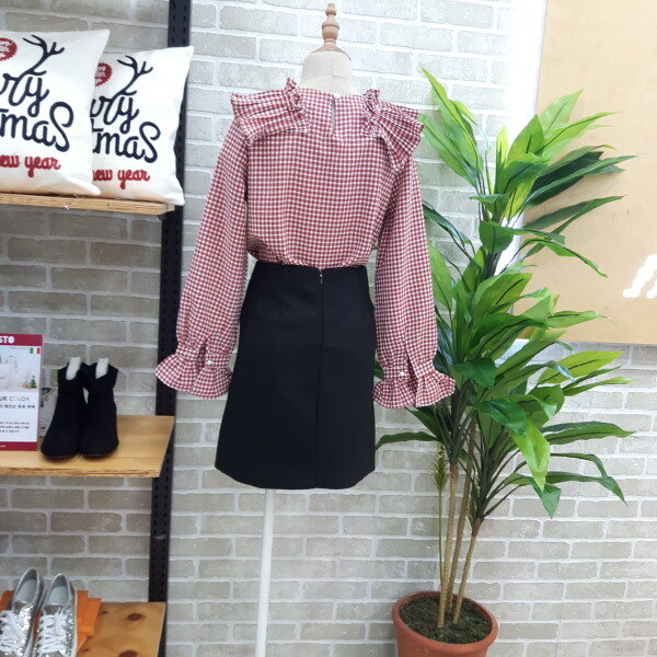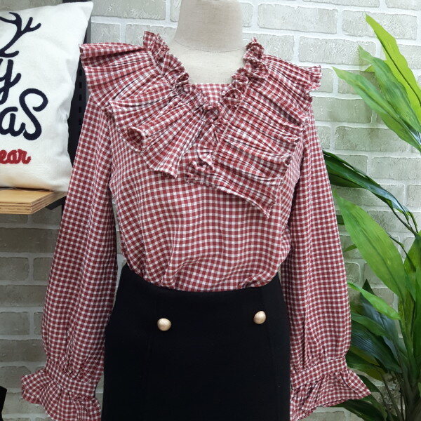 체크블라우스입니다넥부분과 소매부분이 프릴이 있어 여성스러우며 스판력도있어 편안하게 착용하실수 있는 아이템입니다