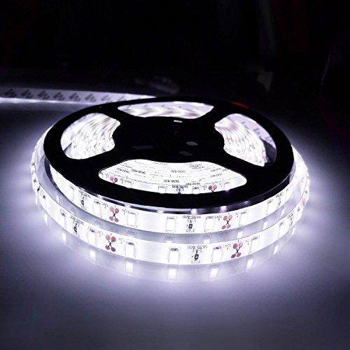 Bogao16.4ft LED Flexible Light Strip, 300 Units SMD 5630 LEDs, 12V DC waterproof, Light Strips, LED ribbon, DIY Christmas Holiday Home Kitchen Car Bar Indoor Party Decoration (White)