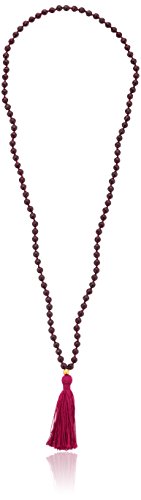 Calm your mind with the peaceful Satya Jewelry Gold Garnet Mala Strand Necklace. Traditionally used for mantras and reflection, this mala incorporates semi-precious stone beads, silk cord, and a lotus bead. Recognizing both a woman's style and her spirit, this handcrafted piece merges deep red garnet on a hand-knotted cord, terminating in a smooth tassel secured with an 18-karat gold-plated lotus. Inspire the love, friendship, and guidance that are symbolic of the garnet, summoning your infinite potential for new beginnings with the lotus. Made of a continuous string of beads with no clasp, this 30-inch necklace slips over your neck to wear. Complete your ensemble with this necklace, or gift it to friends and family for new endeavors like school, a job, or a relationship with the included Satya Jewelry gift pouch.Feature