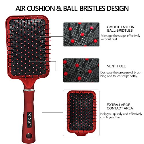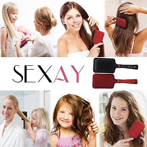 Studio : SEXAY Publisher : SEXAY Binding : Misc. Product Description Key Features: -Ball tipped bristles will not snag or pull - Flexible cushion base for stress free brushing - Smoothes the cuticle layer increasing shine - Massages your scalp to promote hair growth -Detangle hair easy, even when wet -For any kind of hair, thick, curly, or straight -Great for extensions and wigs -Works on wet and dry hair Specification: Hair Brush Dimensions: 9.8 x 3.4 x 1.4 inches Hair Brush Weight: 0.26 lbs Material: SEXAY Large Paddle Brush is made of rubber Paddle and Anti Static Soft Bristles Target User:Women, men,kids etc. Suitable for all kinds of hair:thick, short,long,curly, straight, wet,dry hair Range of application: Home, Health Club, Beauty salon etc. Packaging List: 1X Black paddle hair brush 1X Red paddle hair brush SEXAY CUSTOMER SERVICE GUARABTE 24-Month Warranty and 30-Day Return Policy ; If you're not 100% satisfied with your paddle hair brush, Just Please 'Contact Seller' directly from Amazon Buyer Central against your order and we will take care of you.There is absolutely no risk for you to buy today!