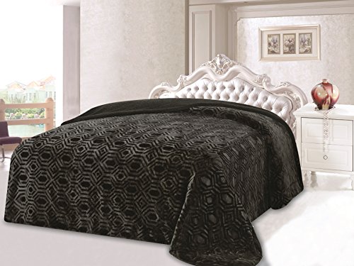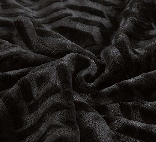 All American Collection New Solid Plush Throw Blanket with Sherpa/Borrego Backing Queen/King Size (Black)