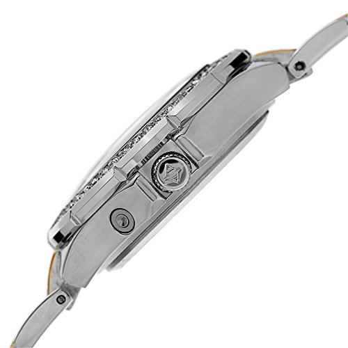 -. Feature : Two toned base metal case with silver toned dial / Scratch resistant mineral crystal / Crystal encrusted bezel and case / Swiss Quartz / Diamond encrusted dial