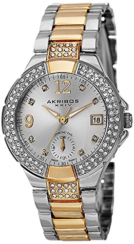-. Title : Akribos XXIV Women's Swiss Quartz Diamond Markers Dual Time Bracelet Watch