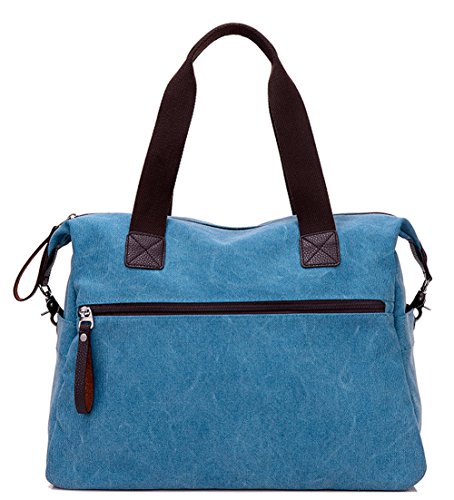 This canvas bag has One-Year Warranty. Zipper closure. The top of the handles are comfortable to carry.