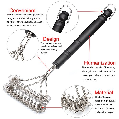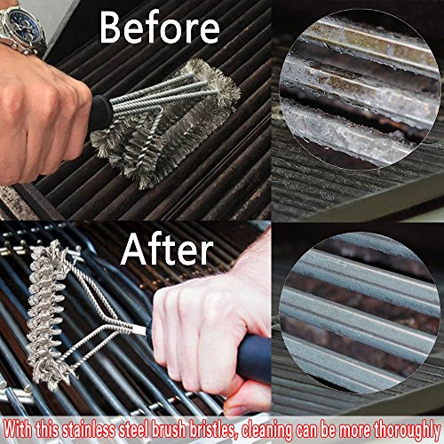 - ★STAINLESS STEEL BRISTLES - Easily removes food, grease, and debris from all type of grill grates without scratching or damaging the surface. Stiff construction makes you don’t need to worry about stray bristles anymore. Safer and healthier than a traditional bristle brush.