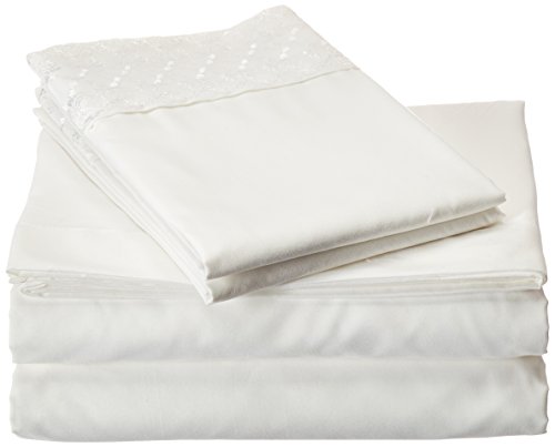 Clara Clark 1800 Collection Bed Sheet Set with a Beautiful Lace Design on the Pillowcase, King, White