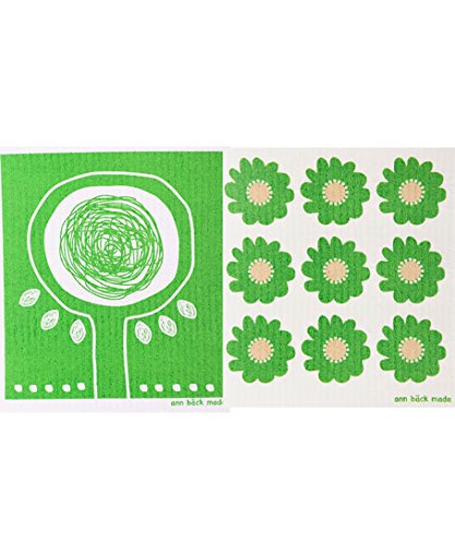 Swedish Dishcloth, Set of 2 Tree & Daisy - GREEN