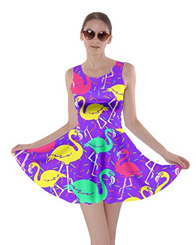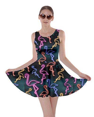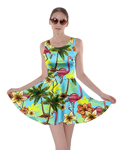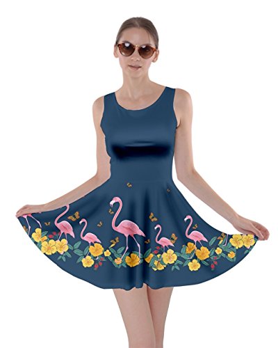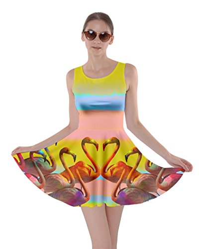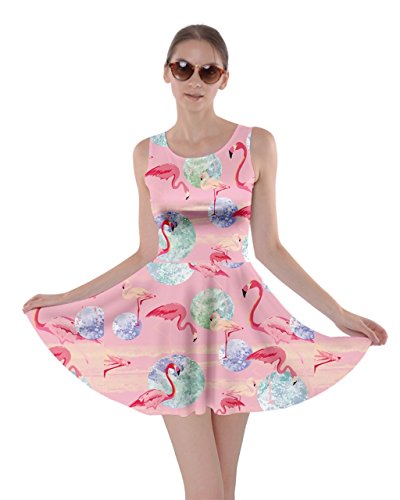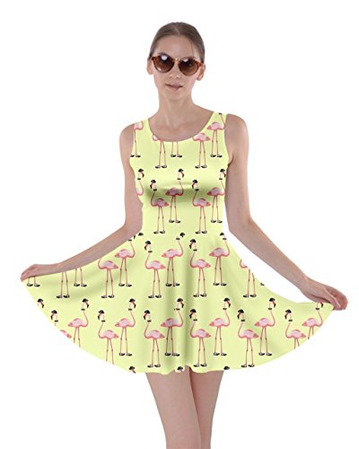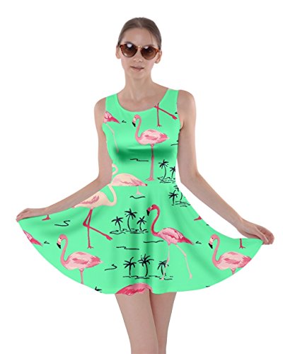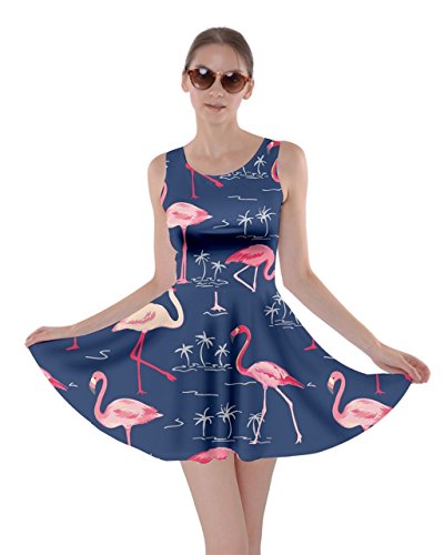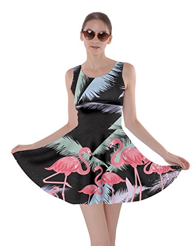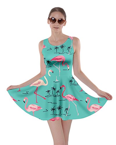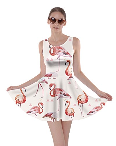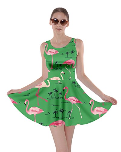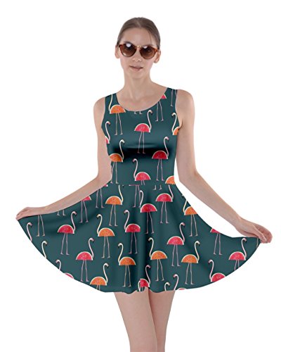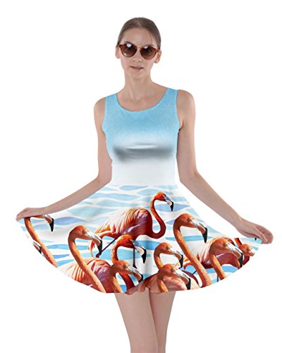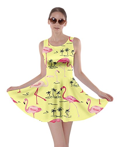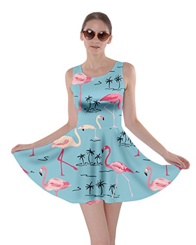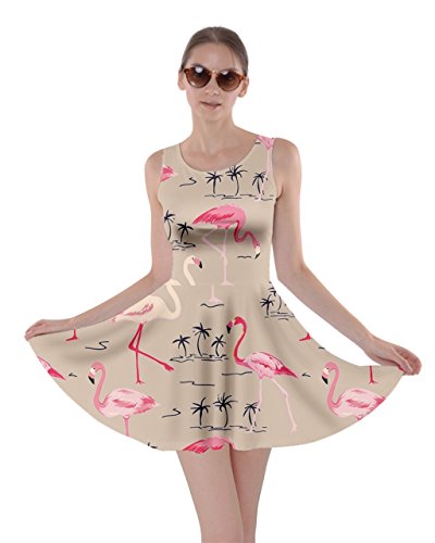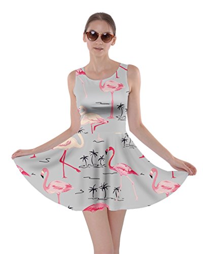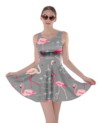 CowCow Womens Light Gray Flamingo Bird Skater Dress, Light Gray Flamingo - XL