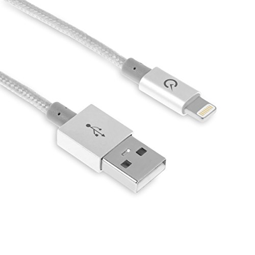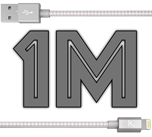 [Apple MFi Certified] Volts 3ft Silver Nylon Braided Lightning to USB Cable Charger w/ Aluminum Case on 8 pin Connector. Tangle Free Premium Accessories Made for iPhone, iPad, iPod. (3.3ft / 1 meter Silver)