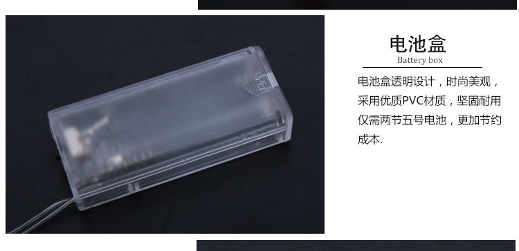 u0026nbsp; u0026nbsp; u0026nbsp; u0026nbsp; u0026nbsp;电线:7*12全环保透明线,线粗1.5-1.6(普通的为1.4),10LED暖白总长1.5m,2AA u0026nbsp; u0026nbsp; u0026nbsp; u0026nbsp; u0026nbsp;电池盒。
