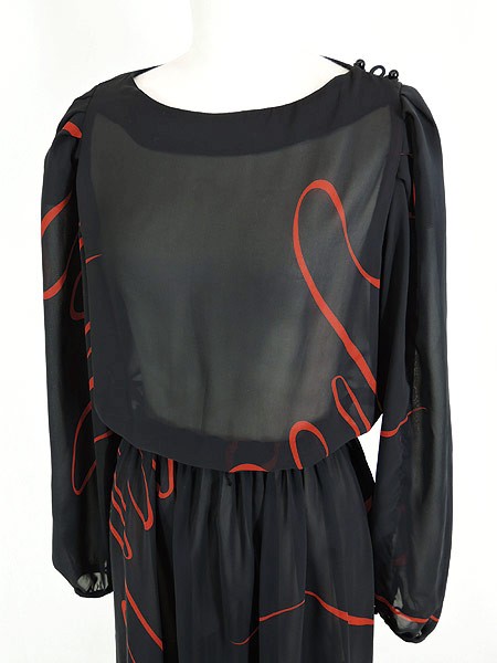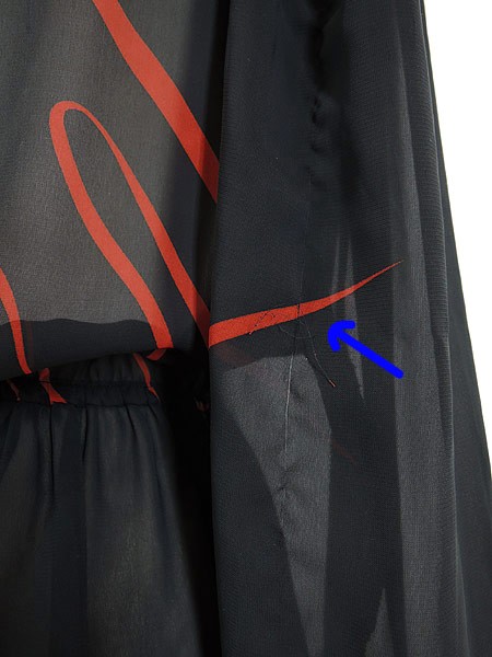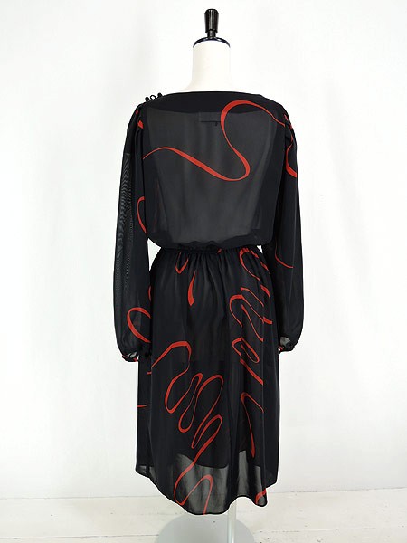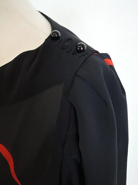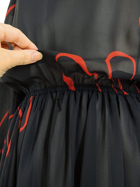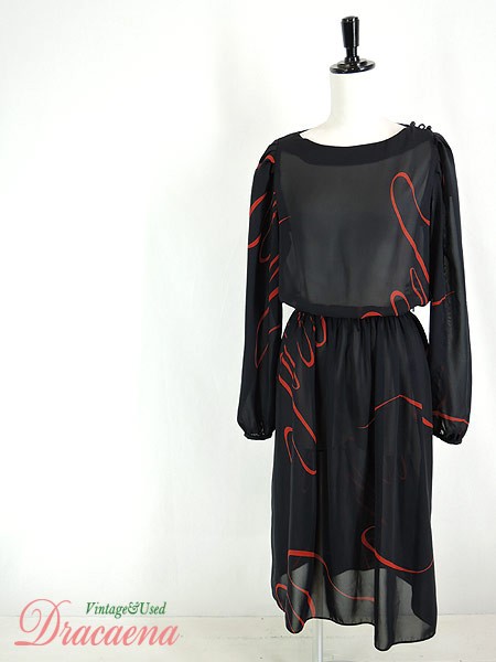 Ladies ブランド- カラー黒・赤 メール便不可 コンディション★★★ 素材ポリエステル 表記サイズ10 スタッフコメント右袖、二の腕付近に小さい穴あり 左袖、糸のツレによるダメージあり 透ける素材の為、インナーの着用が必要です 実寸サイズ 着丈 113 cm 身幅 51 cm 肩幅 33 cm 袖丈 64 cm ウエスト 62cm 〜 82cm (24インチ〜32インチ) ※ウエスト・ヒップ以外は平置き採寸