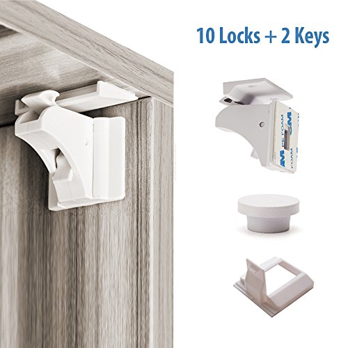 NOYALI Baby Proof Cabinets And Drawers Magnetic Locks - Easy To Install, No Screws - Child Safety Locks Set Of -10 Locks, 2 Keys, Installation Device+ FREE 3M...