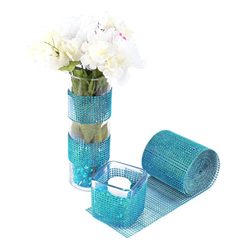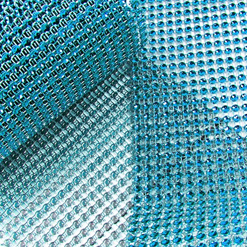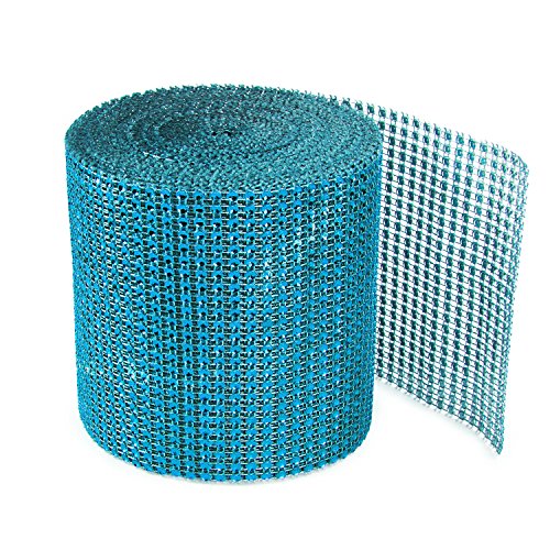 Turquoise Rhinestone Diamond Style Arts and Crafts Decorating Mesh Ribbon Roll (4.75" x 10 Yards, 24 Row, 1 Roll)