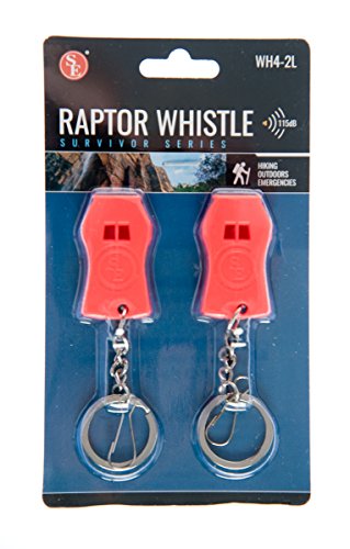 SE WH4-2L Survivor Series Plastic Raptor Survival Whistle with Key Chain and Zipper Ring, 2 Piece