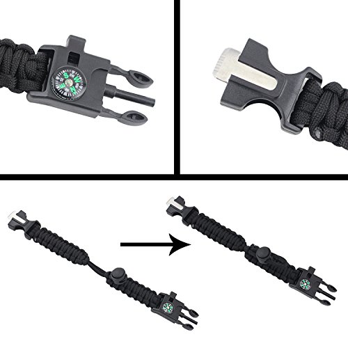 - --- The paracord bracelet comes with a number of functions that can be removed as ropes for making traps, tents and other emergencies. Is the best partner for your wild trip.