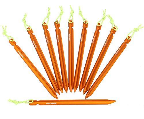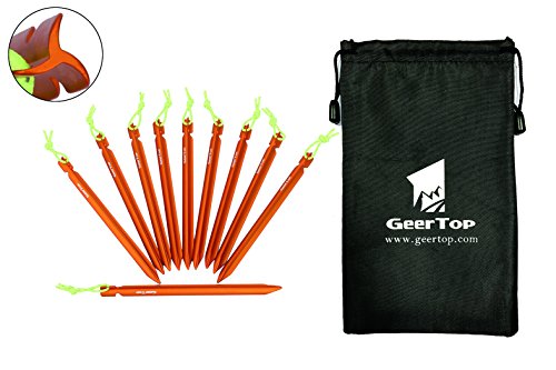 GEERTOP Lightweight Aluminum Tent Peg Stakes with Reflective Pull Cord and Pouch for Outdoor Camping - Pack of 10
