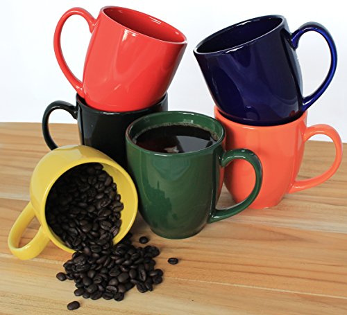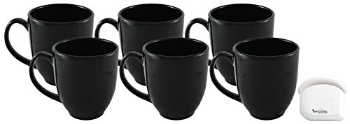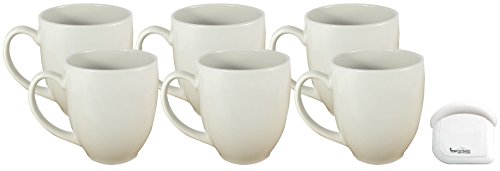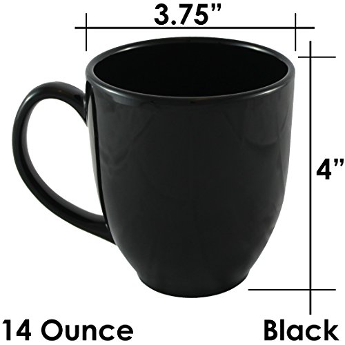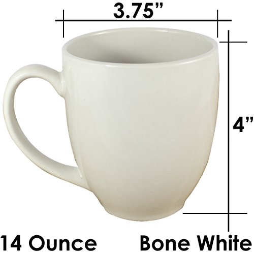 -. Feature : Set of 6 Bistro style ceramic coffee mugs / 14 Ounce / Size: 3.75" Wide x 4" Tall / Very durable, commercial grade ceramic porcelain mugs / Used by many restaurants and food service industries - Microwave and dishwasher safe / Includes a handy MBW NW BRANDS pot / pan scraper