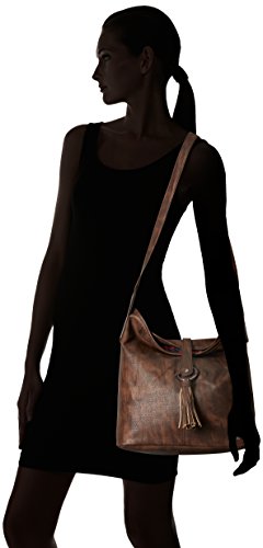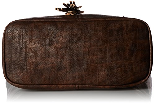 Faux-leather washed, shoulder bag, big volume, shoulder strap, metal eyelet with main fabric pompom embellishment, nylon zip closure, printed lining, Roxy metal plate.^Size: 15 h x 10, 2 w x 2 d/38H x 26W x 5 cm 4, 9LFeature