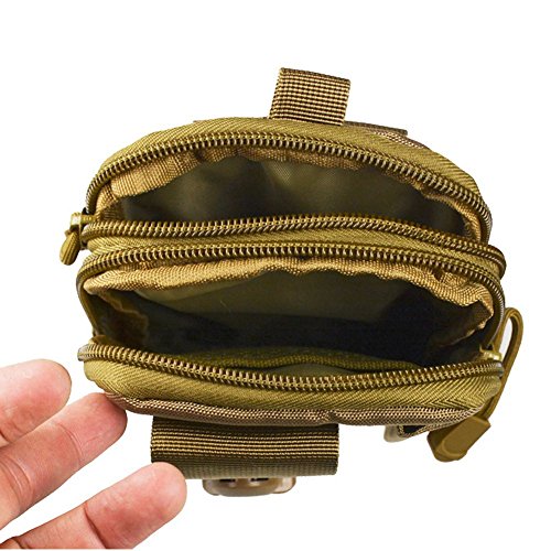 -. Feature : The tactical pouch is constructed of high- quality 1000D Nylon, and anti-scraped and wear-resisting, not easy to fade. / All stitching and webbing is made of nylon materials of best quality, double plus bar umbrella hove chain head. The military pouch is really durable. / The bag is a more-in-one pouch large capacity. It is very easy to put in and take goods out. Perfect for storing cell phone, key-chain, GPS device, digital cameras, medical supplies, small tools, and everything else you need readily accessible. Two zippered compartments, exterior phone pocket(fits iPhone 6S/6+)with buckle closure,exterior pen sheath. / The MOLLE pouch is of strong water proofing property to ensure its long-term use in a humid environment, or that the product does not decay after flooding. / The surface of the Utility Gadget Pouch is not easy to stick dust, stains, easy to take care.