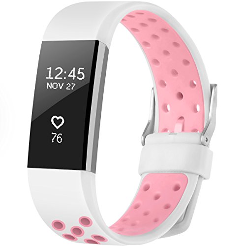 Band for Fitbit Charge 2 HR with rows of two-color compression molded perforations reduce weight and improve ventilation, No WEAR-OFF