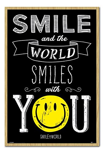 -. Title : Smile & The World Smiles With You Poster Magnetic Notice Board Beech Framed - 96.5 x 66 cms (Approx 38 x 26 inches)