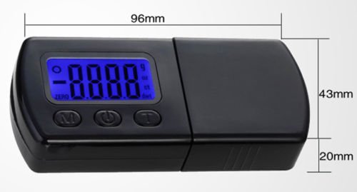 Capacity : 0-5.00g ( display 3 digit ), Graduation : 0.01g- highly sensitive, Dimensions : 96 X 43 X 20 mm, Power : 2 X 1.5V lithium cell Ag12 (included)