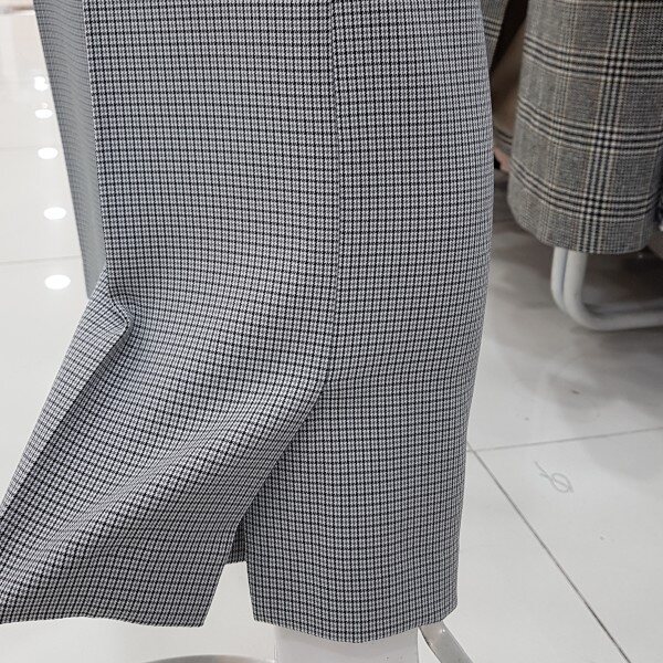 살짝부츠컷에 잔잔체크 날씬핏아이네요얇은 소재에 짱~좋은 신축성은촉감도 굿~ 착용감도 넘 좋아요옆트임에 세련하구요단품으로 또는 재킷과 한벌로 연출해보셔용