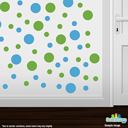 Set of 30 - Lime Green / Ice Blue Circles Polka Dots Vinyl Wall Graphic Decals Stickers