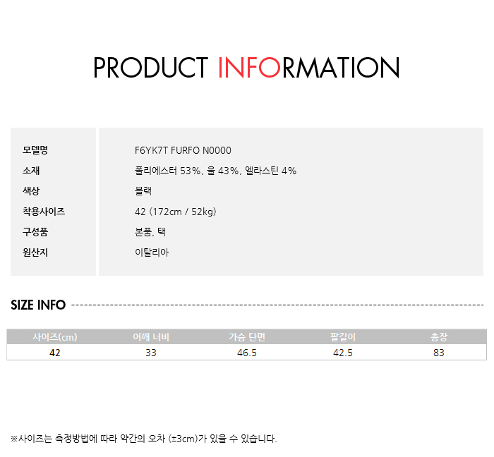 소재폴리에스터 53%, 울 43%, 엘라스틴 4%