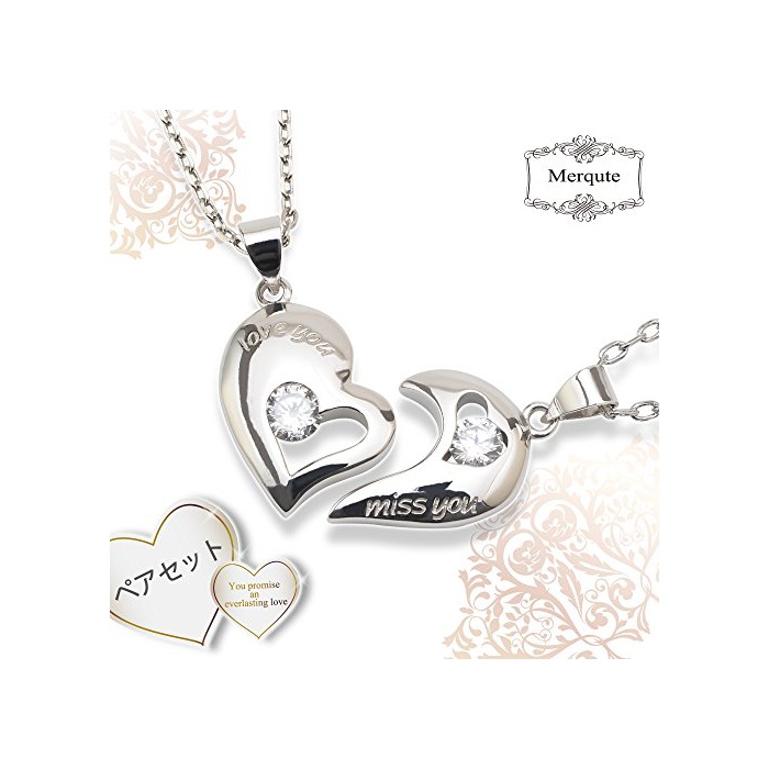 [멜 큐트] Merqute 페어 넥크리스 하트 각인 스테인레스 실버 페어 M-042
