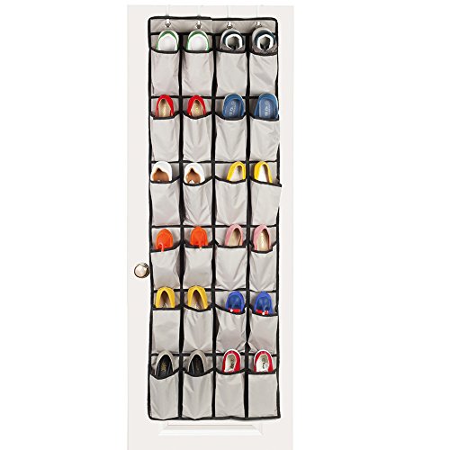 -. Title : 24 Pockets - OVER THE DOOR SHOE RACK and Closet Organizer System for Maximizing Storage,4 Customized Over the Door Hooks