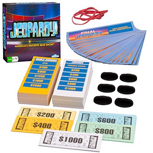 -. Binding : Toy -. Brand : JEOPARDY -. EAN : 0625012175227 -. Feature : America's favorite quiz show can now be played in the comfort of your own home. / Game is played nearly identical to show with Jeopardy, Double Jeopardy and Final Jeopardy cards. / One player is selected to be the host, while the other players compete to win the most money. / Includes 180 cards total, 6 card stands and playable Jeopardy money. / For ages 12 and up and 3 or more players. -. IsAdultProduct : 0 -. Label : JEOPARDY -. Manufacturer : JEOPARDY -. MPN : 17522 -. NumberOfItems : 1 -. PackageQuantity : 1 -. PartNumber : 17522 -. ProductGroup : Toy -. ProductTypeName : TOYS_AND_GAMES -. Publisher : JEOPARDY -. Studio : JEOPARDY -. Title : Jeopardy America's Favorite Quiz Show - Now a Popular Party Game -. UPC : 625012175227
