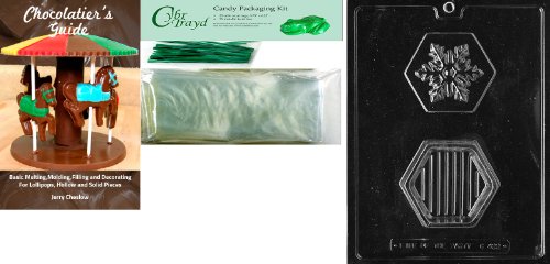 Cybrtrayd Snowflake Pour Box Chocolate Mold with Chocolatier's Bundle of 25 Cello Bags, 25 Green Twist Ties and Chocolatier's Guide