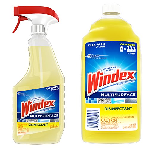 ReleaseDate : 2017-03-06 Studio : SC JOHNSON Publisher : SC JOHNSON Binding : Health and Beauty Product Description Streak-Free Shine! Windex Disinfectant Cleaner Multi-Surface cleans, shines, and kills 99.9% of germs, viruses^, and bacteria on hard, non-porous surfaces. Works on: Countertops like Corian, sealed granite, sealed marble (real or synthetic), Formica; exterior surfaces of appliances like microwaves, stovetops, and kitchen sinks; stainless steel, glazed ceramic tile, windows, plastic, vinyl, glass, and more! When used as directed, kills: Staphylococcus aureus (Staph), Salmonella enteric (Salmonella), Pseudomonas aeruginosa (Pseudomonas), Streptococcus pyogenes (Strep), Rhinovirus Type 37 (common cold), Influenza A2/Hong Kong (H1N1) (flu) (virus) ^Rhinovirus Type 37 (common cold), Influenza A2/Hong Kong (H1N1), Influenza B Staphylococcus aureus (Staph), Enterobacter aerogenes (Enterobacter), Escherichia coli (E. coli), Salmonella enteric (Salmonella), Campylobacter jejuni, and Listeria monocytogenes (Listeria), Streptococcus pyogenes (Strep). 0