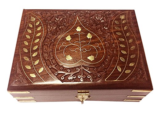 Valentine Day Special Present, Wooden Jewelry Box, Leaf Design Carving Inlay Storage Box, Vintage Box, Storage Box, Jewelry Box Organizer, Jewelry Trinket Box, Brown Color Size 6 X 4 Inch.