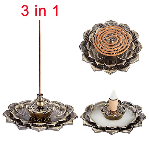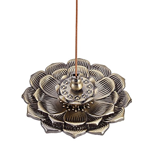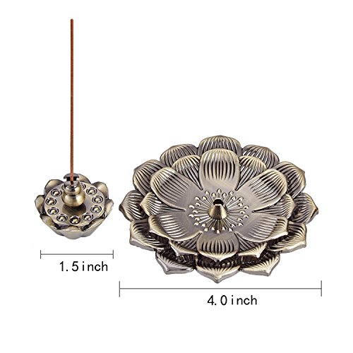 UOON Bronze Lotus Flower Incense Stick Burner Holder Ash Catcher