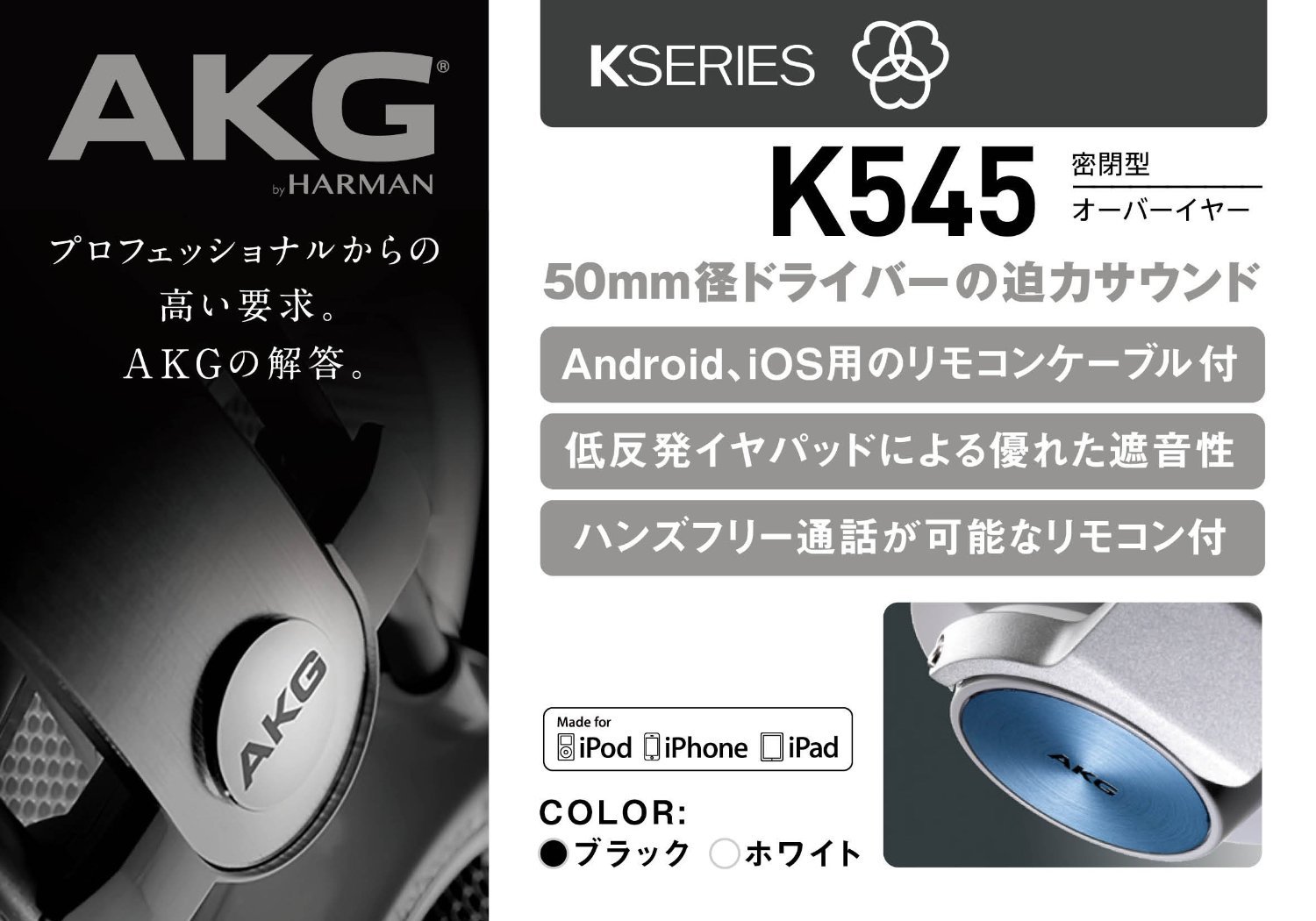· High caliber 50 mm diameter screwdriver · High quality sound · High sound insulation · Comfortable fitting feel · Cable detachable · Apple product compatible microphone attached 3 button remote control mounted cable included