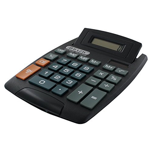 This battery-operated, plastic, 8-digit calculator has easy-to-read numbers and function buttons, plus large raised display that tilts for easy viewing while on a flat service like your office desk. Condition: NewMaterial: PlasticColor: BlackFeature