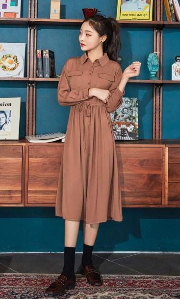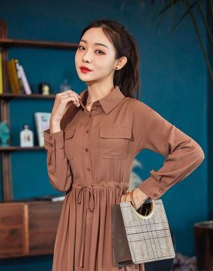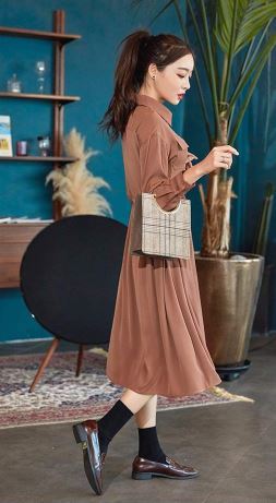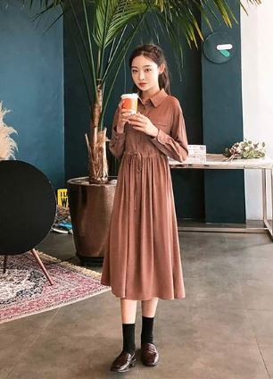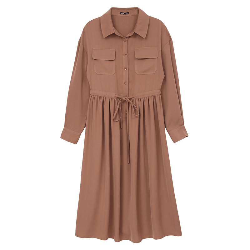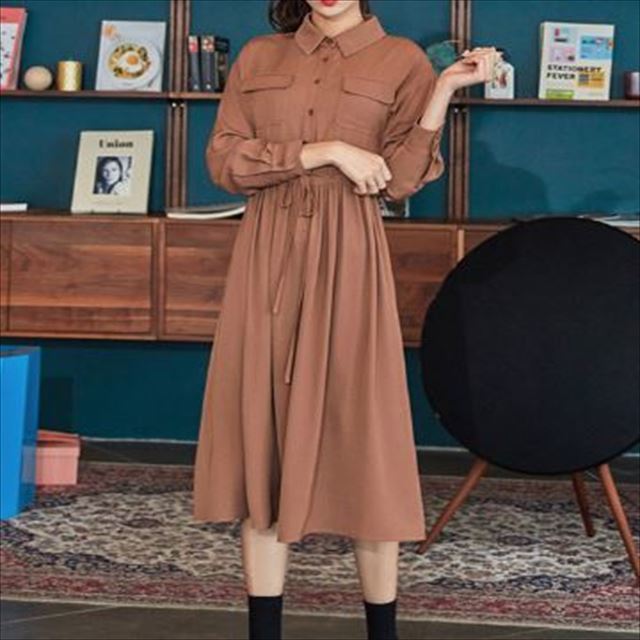 レトロ感のある落ち着きのある色合いが上品なシャツワンピースです。