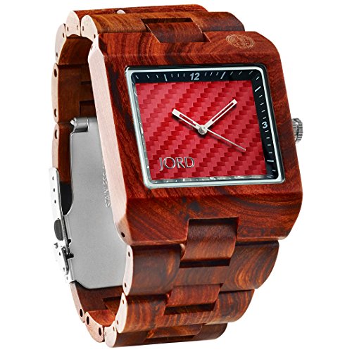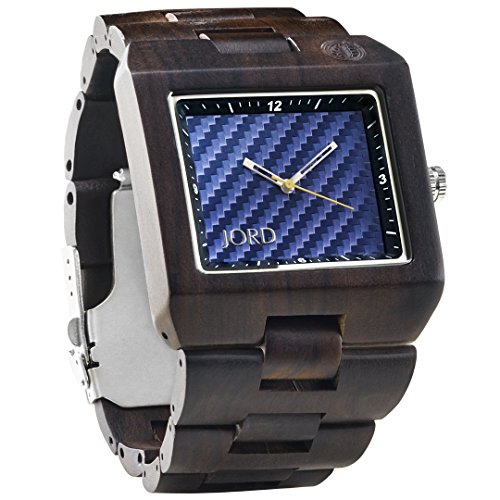 JORD is the top selling premium wood watch brand in the world. The Delmar timepiece portrays sharp lines and a youthful design. Dark sandalwood offers minimal grain texture to provide contrast across the lightly tapered band and square case. A deep black carbon fiber face and bright stainless steel hands sit beneath scratch resistant mineral glass.